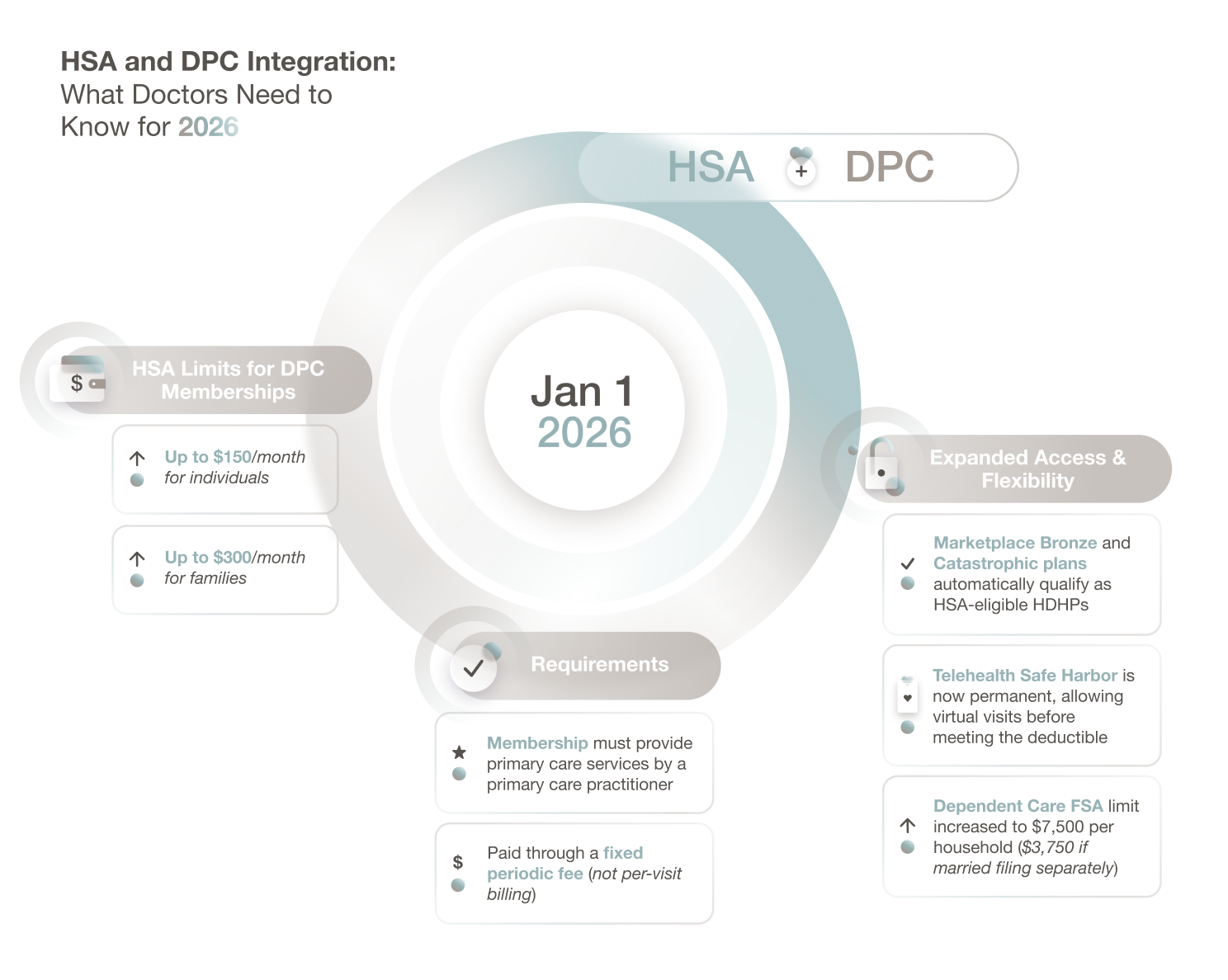 “Beginning in 2026, you’ll be able to use your HSA to pay for your DPC membership. You’ll keep your high-deductible plan for major coverage and use your HSA for ongoing primary care, all while saving on taxes.”